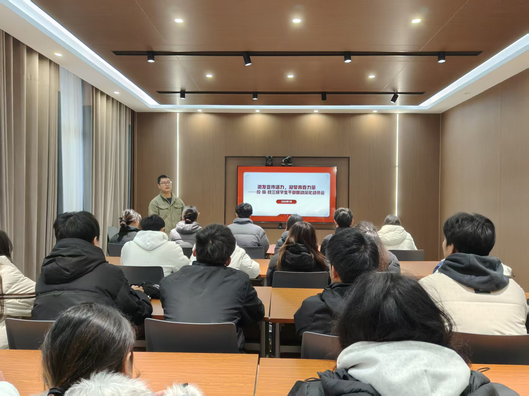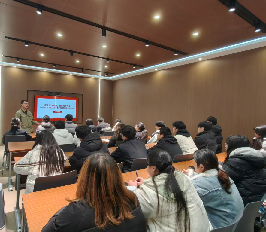 为落实学校《关于2025-2026学年常态化创新宣传的实施意见》文件精神,营造积极向上舆论氛围,形成全员参与宣传合力,学生处于1月4日组织校级学生组织学生干部、各二级学院学生会主席团代表、班级班长代表,开展“校-院-班”三级学生干部联动宣传工作推进会。